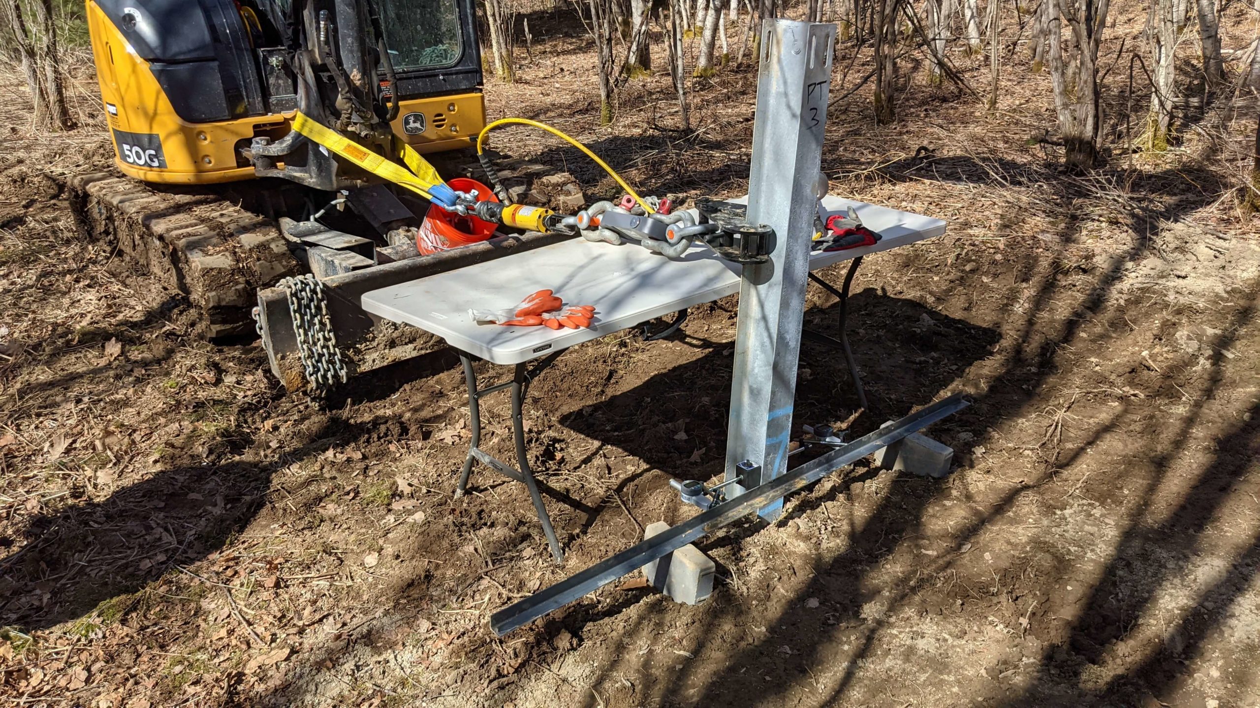 After 72-hours from pile installation, uplift and lateral load tests were performed on each pile. Uplift load testing was performed, and lateral load testing were conducted on their corresponding piles. Once the load tests were completed, piles were removed, and the bottoms of the piles were observed for pile flaring.
