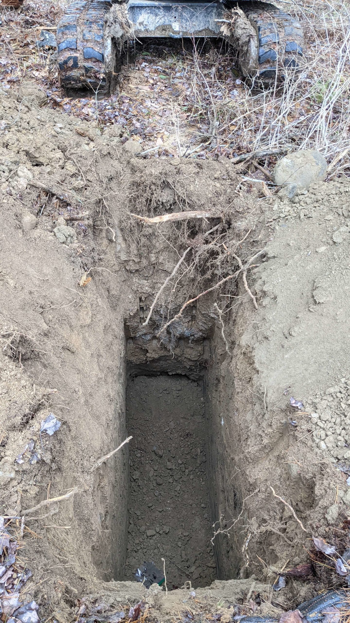 ANS Geo retained local contractor to excavate a total of 16 test pits across the site to evaluate subsurface conditions. The test pits were advanced to depths ranging between 6 and 9.5 feet below grade. Soil strata changes, soil classification, groundwater observations and excavation depths were documented by an ANS Geo geotechnical representative under the direction of a Professional Engineer licensed in the State of New York. Bulk soil samples were collected for laboratory testing of Thermal Resistivity and corrosivity.