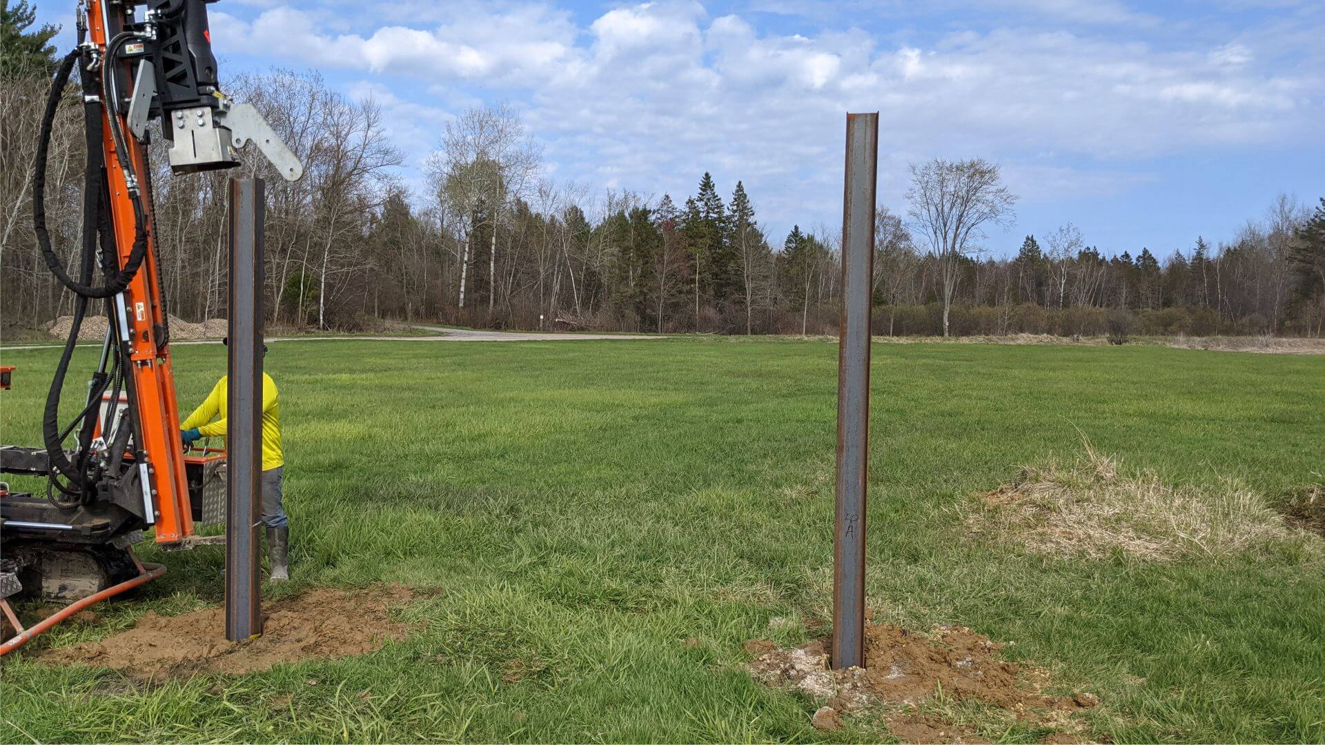 ANS Geo also installed W6x9 steel piles and conducted load tests at 59 paired pile locations (118 total piles). Each pile was installed to an embedment depth of 5.1 to 10.8 feet below existing grade using a GAYK HRE 4000 Pile Driver. For locations that encountered shallow bedrock during the soil boring phase, 10-foot holes were predrilled into the rock to allow for pile installation.